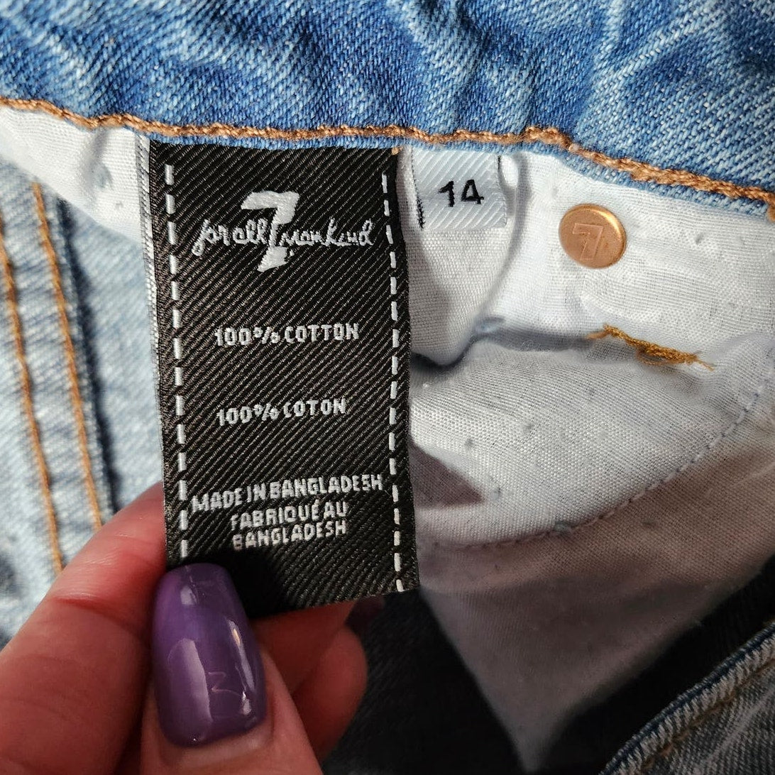 7 For All Mankind Denim Bermuda Shorts Size 14 Medium Wash Distressed