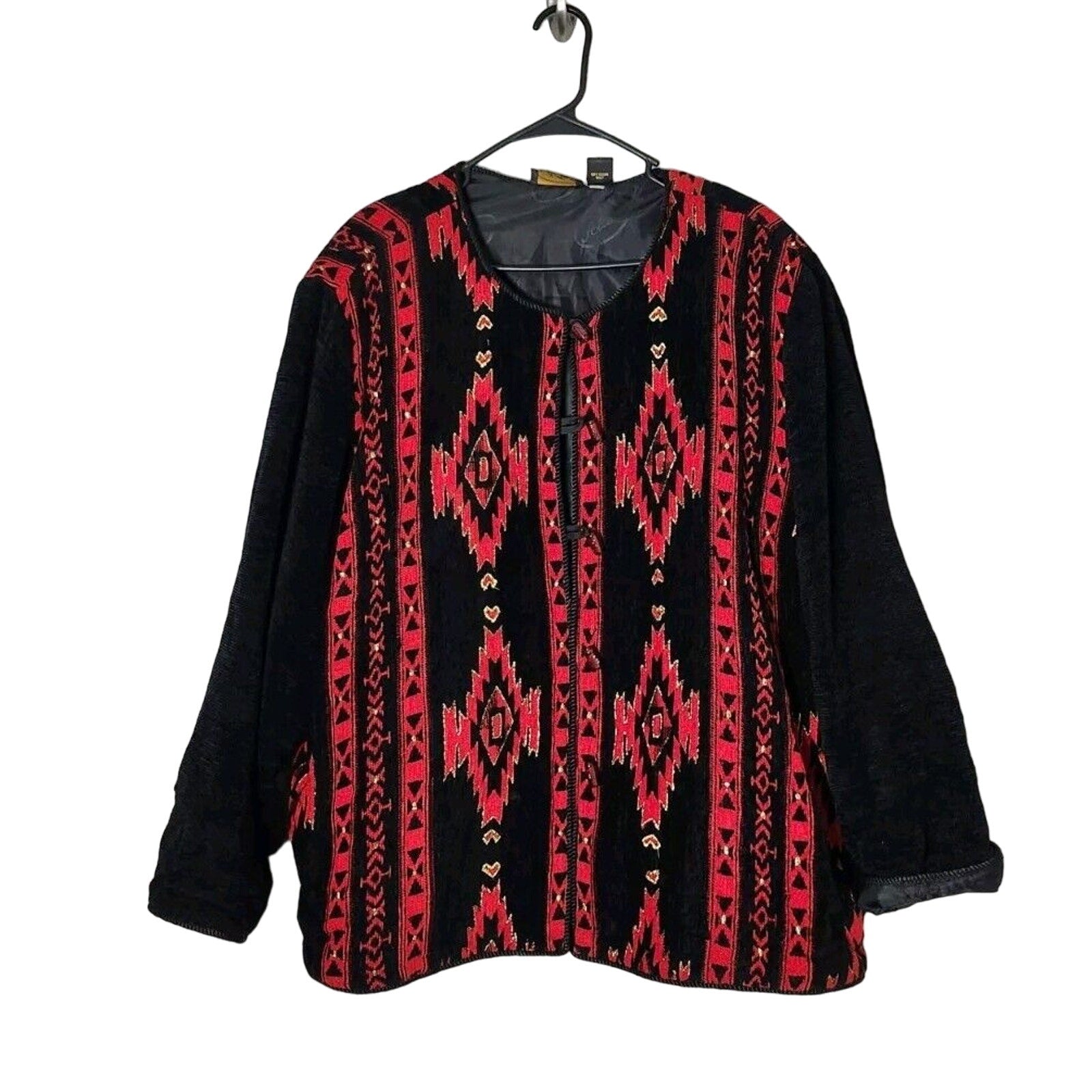 Allure Coat Jacket Plus Size 2X Aztec Red Black Button Front Embroidered Western