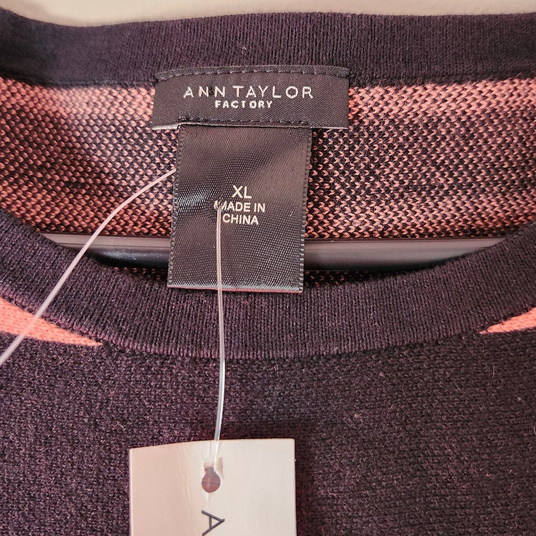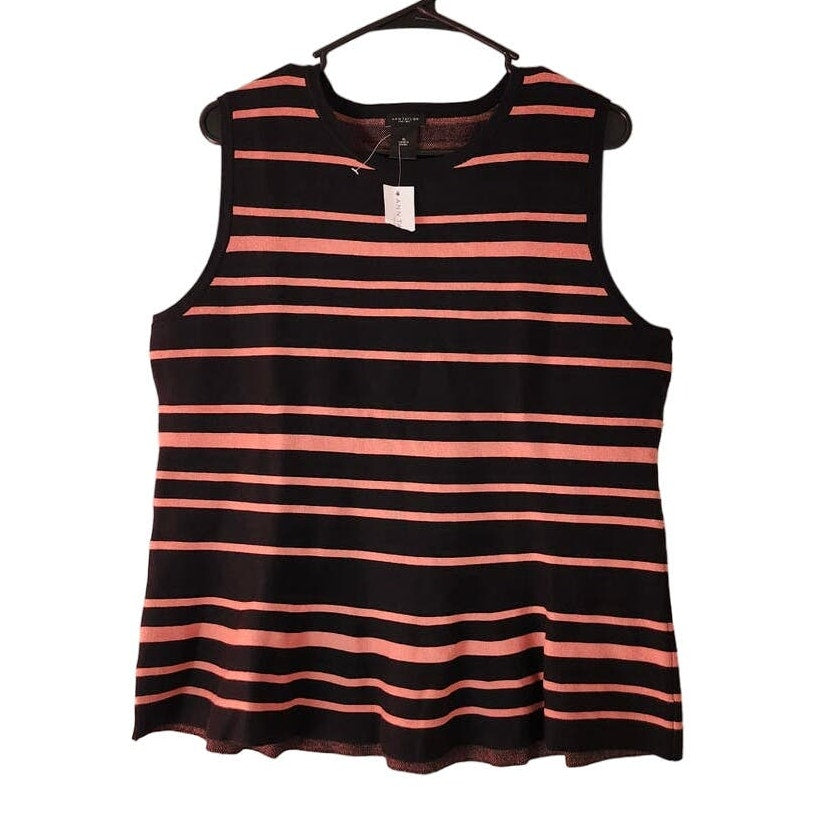 Ann Taylor Factory Peplum Blouse Size XL Striped Black and Pink Sleeveless NWT