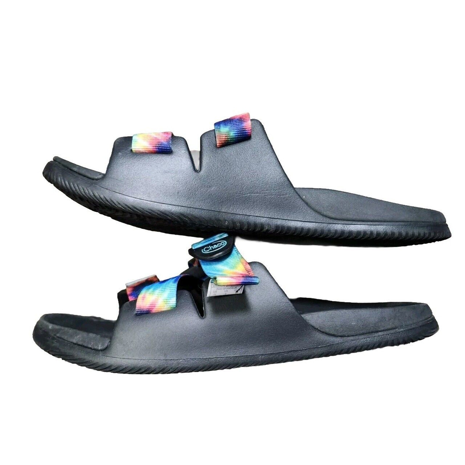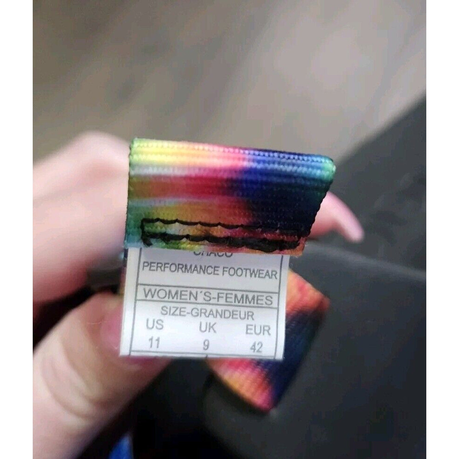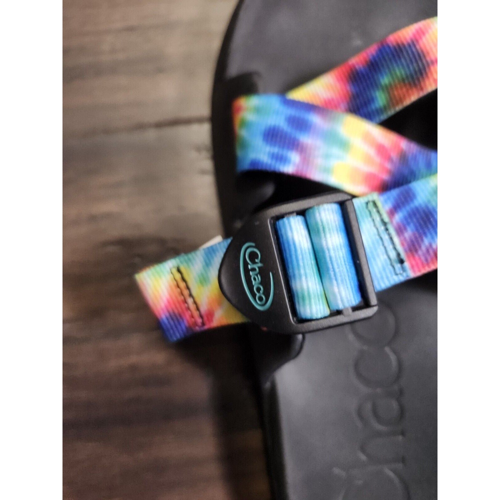 Chaco Sandals Womens 11 Black With Colorful Tie Dye Straps Adjustable Rainbow