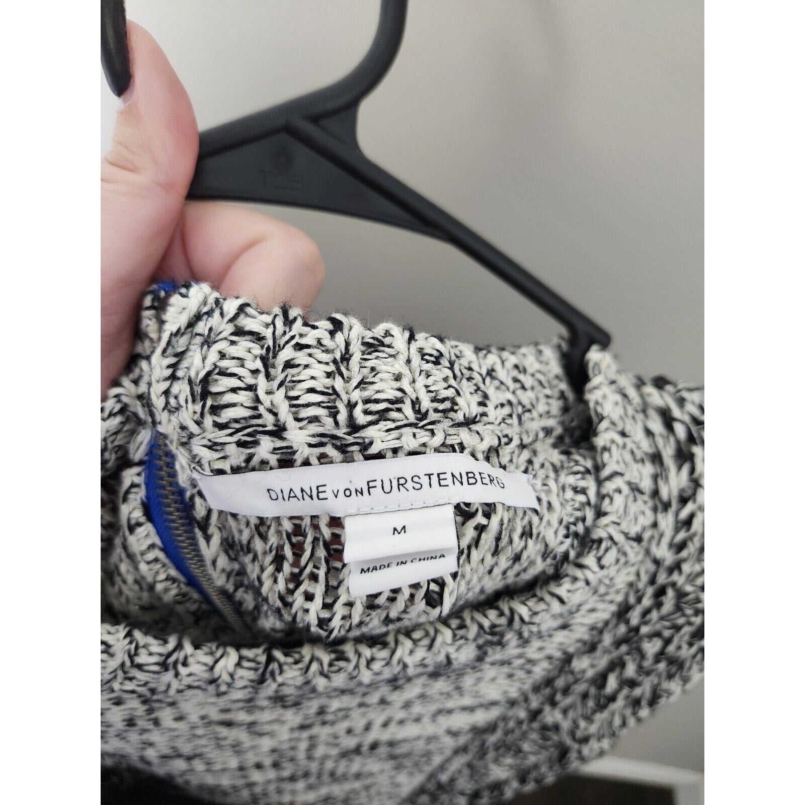 Diane Von Furstenberg Ettie Sweater Size M Knit Wool Linen Back Zip Gray