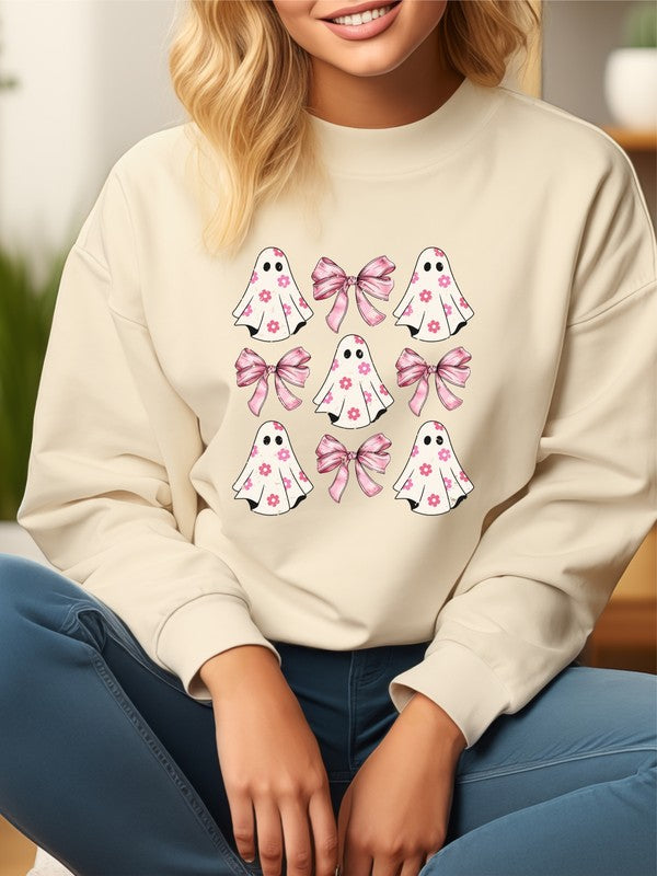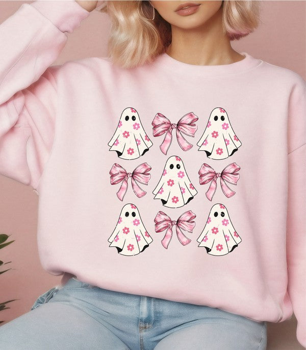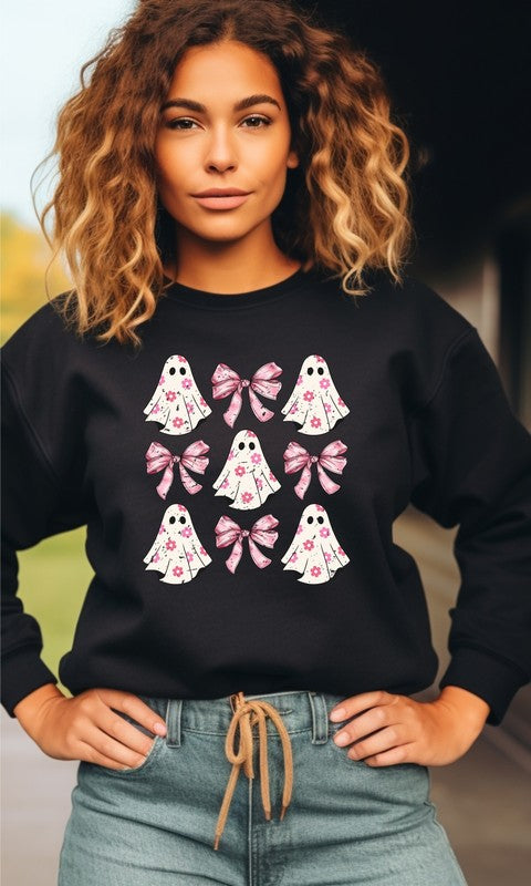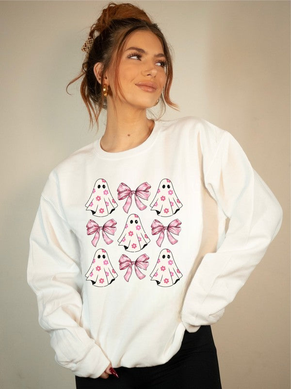 Pink Halloween Ghost Pumpkin Coquette Graphic Sweatshirt
