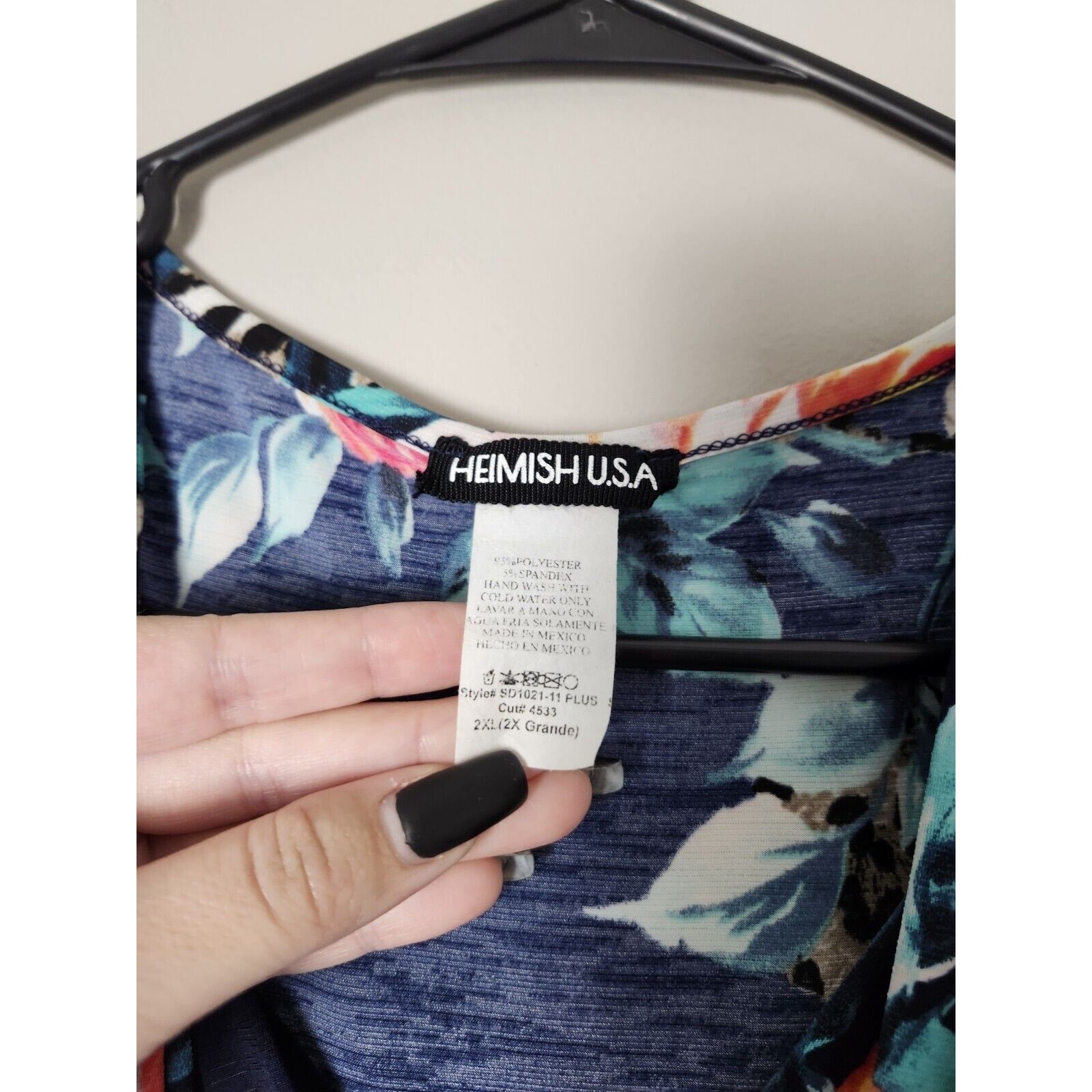 Heimish USA Maxi Dress Plus Size 2X Blue Pink Floral Animal Print Pockets