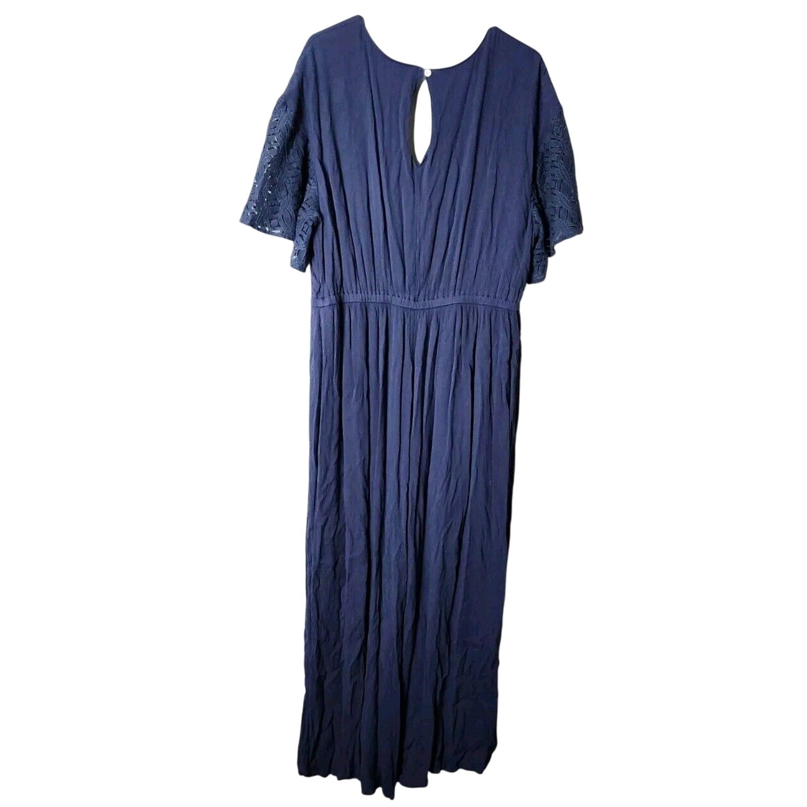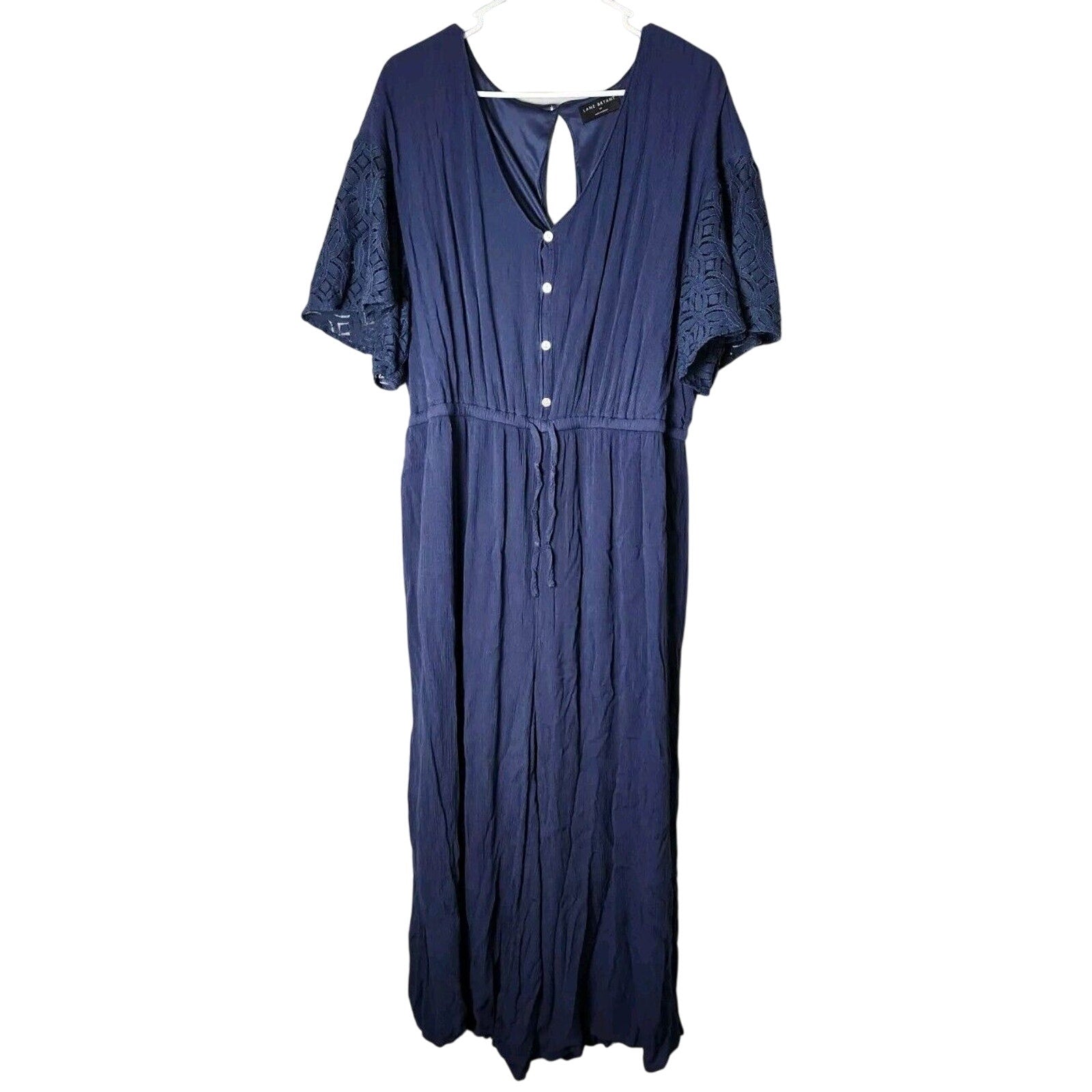 Lane Bryant Jumpsuit Plus Size 18 Blue Short Flutter Sleeve V-Neck Elastic Waist