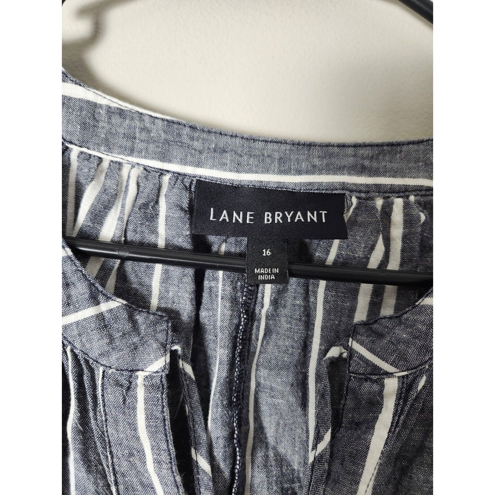 Lane Bryant Shirt Blouse Plus Size 16 Blue White Striped Long Sleeve Button Up Linen Blend
