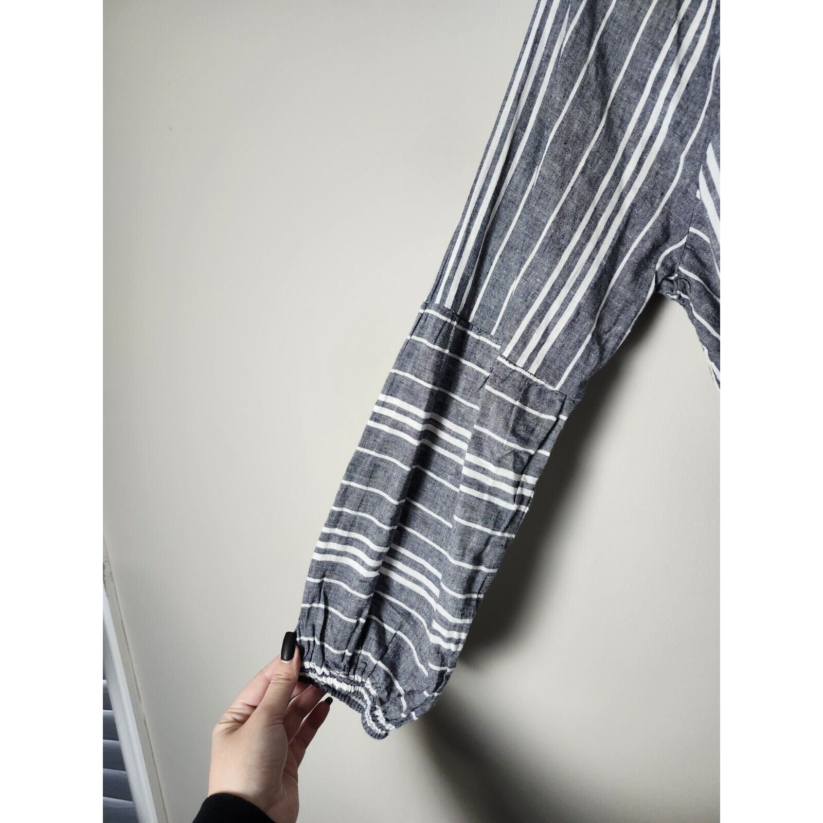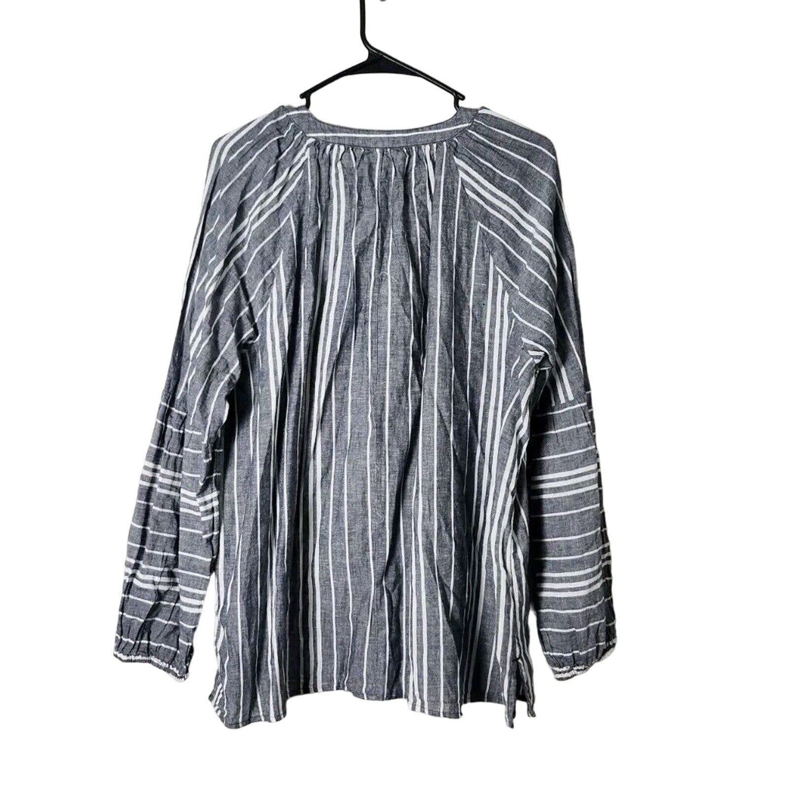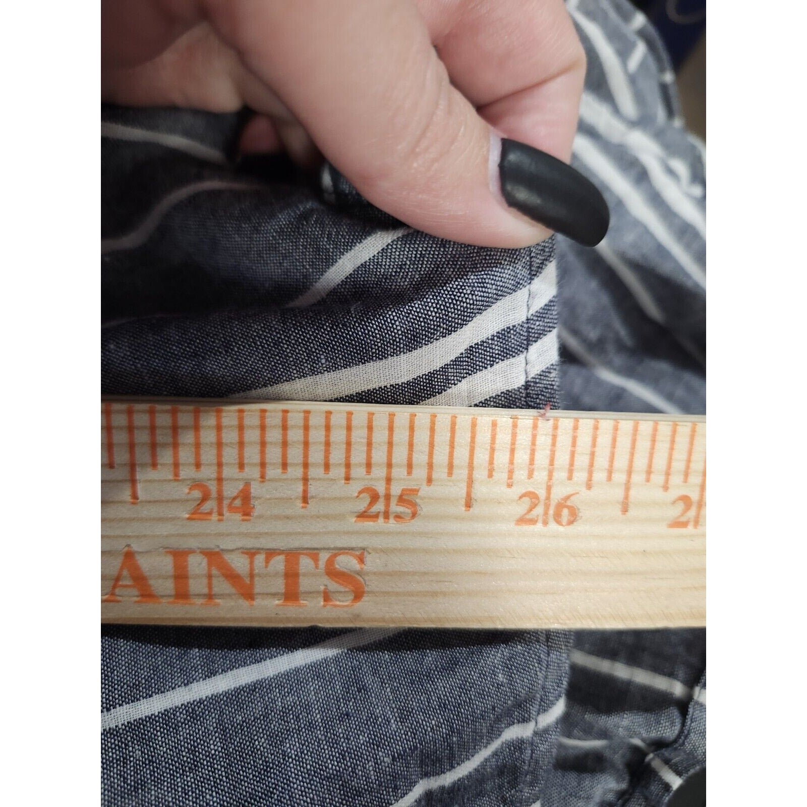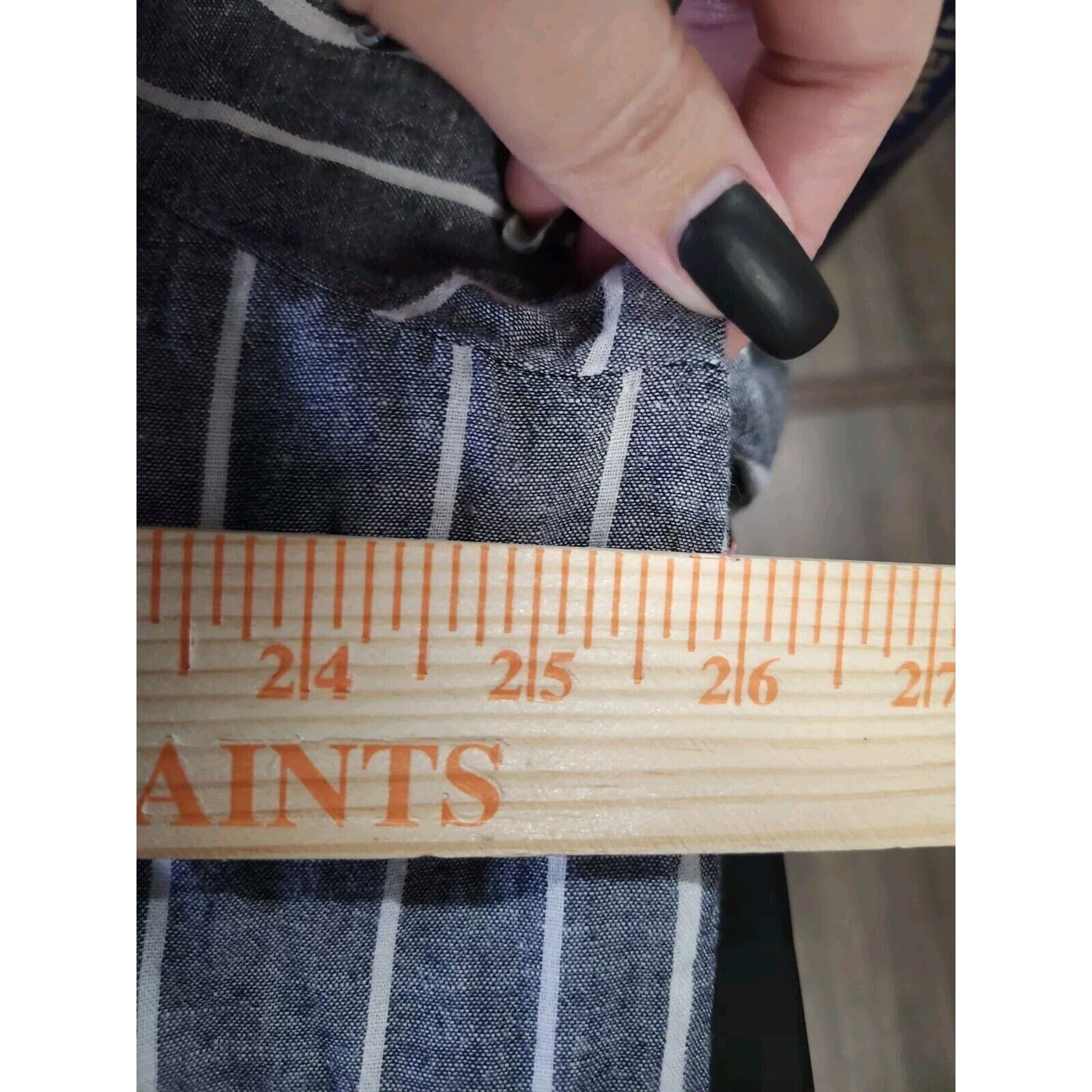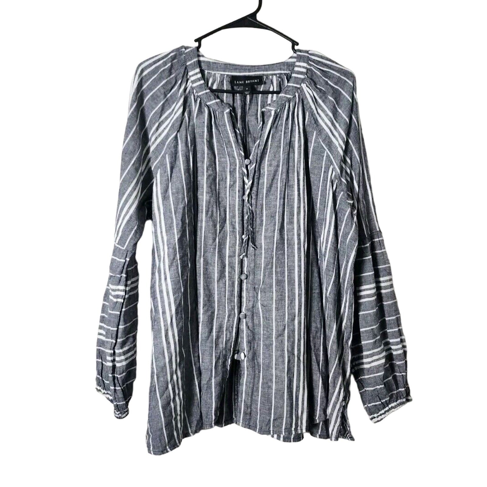 Lane Bryant Shirt Blouse Plus Size 16 Blue Striped Long Sleeve Button Up Linen