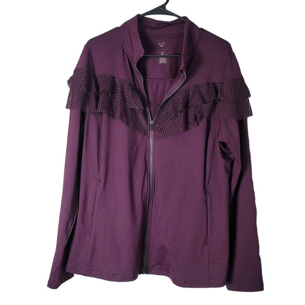 Livi Active Lane Bryant Jacket Plus Size 2X Purple Zip Up Active Mesh Ruffle