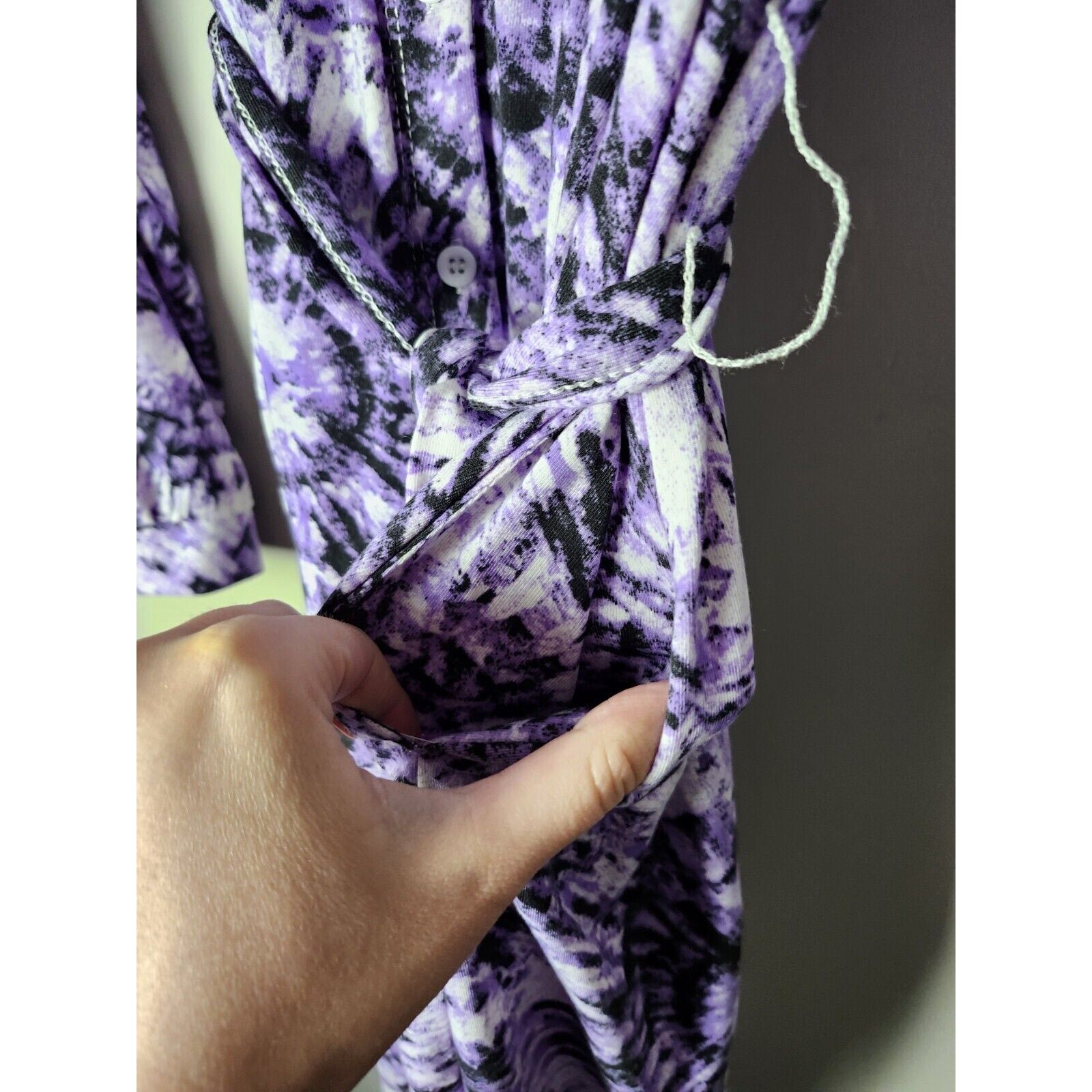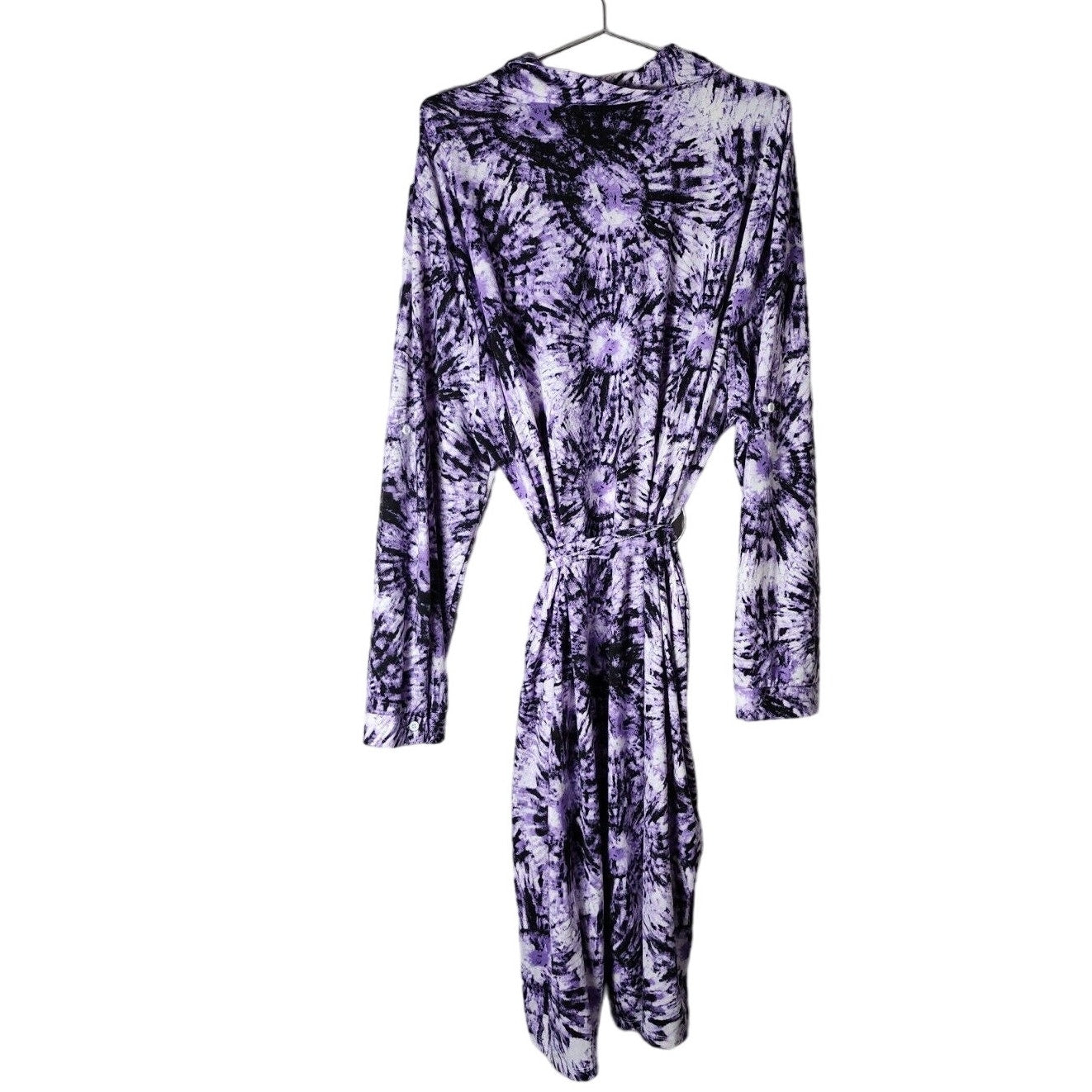 LuLaRoe Ellie Midi Shirt Dress Plus Size 3XL Purple Tie Dye Button Up Tie Waist