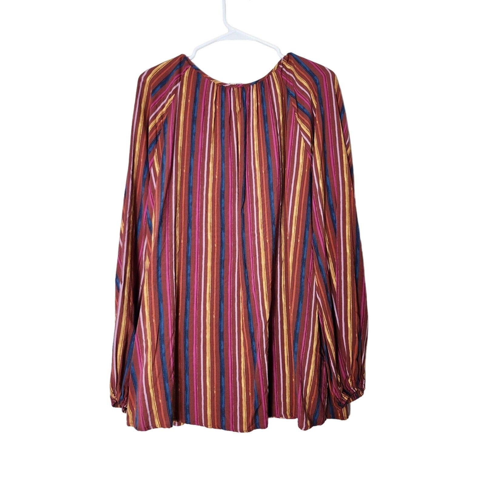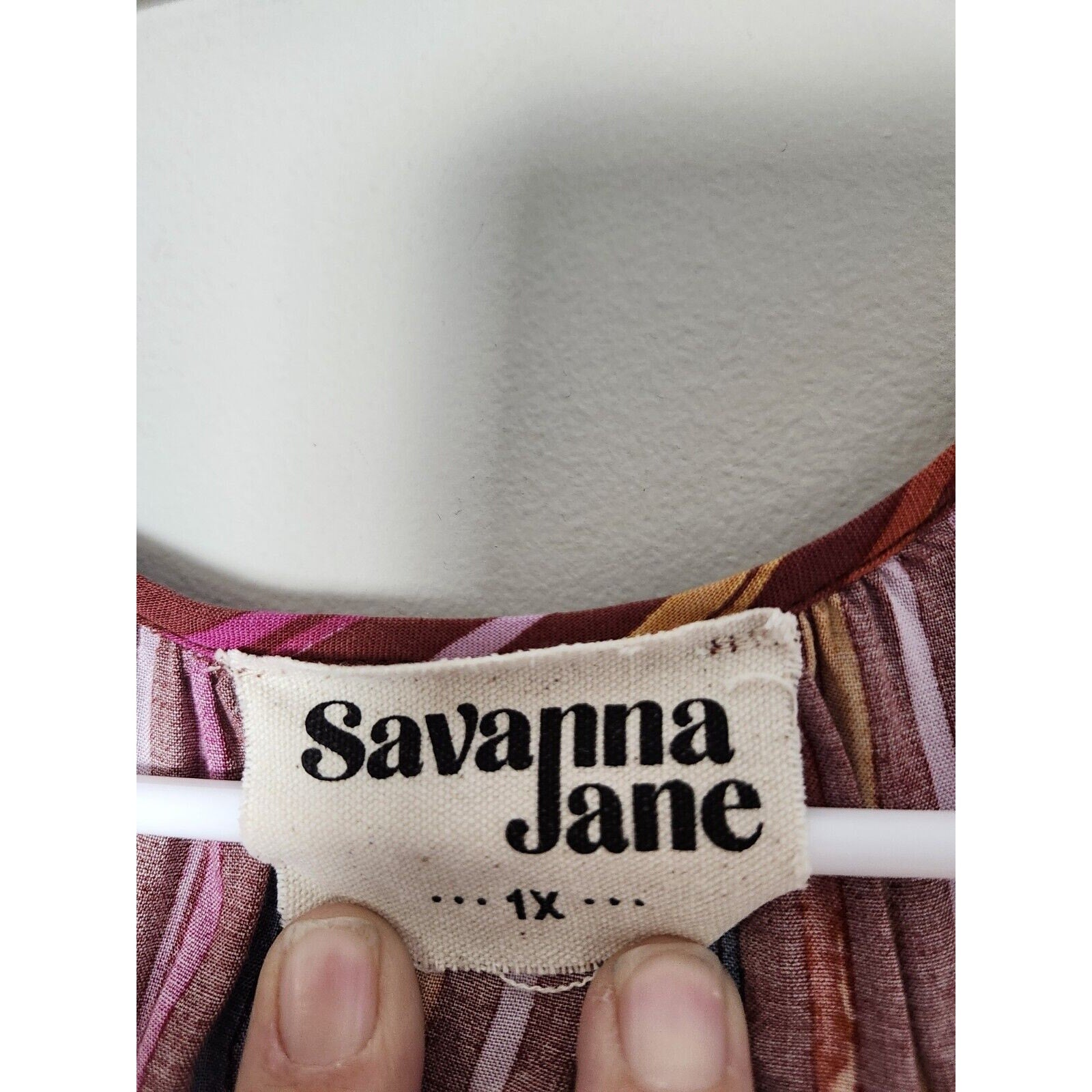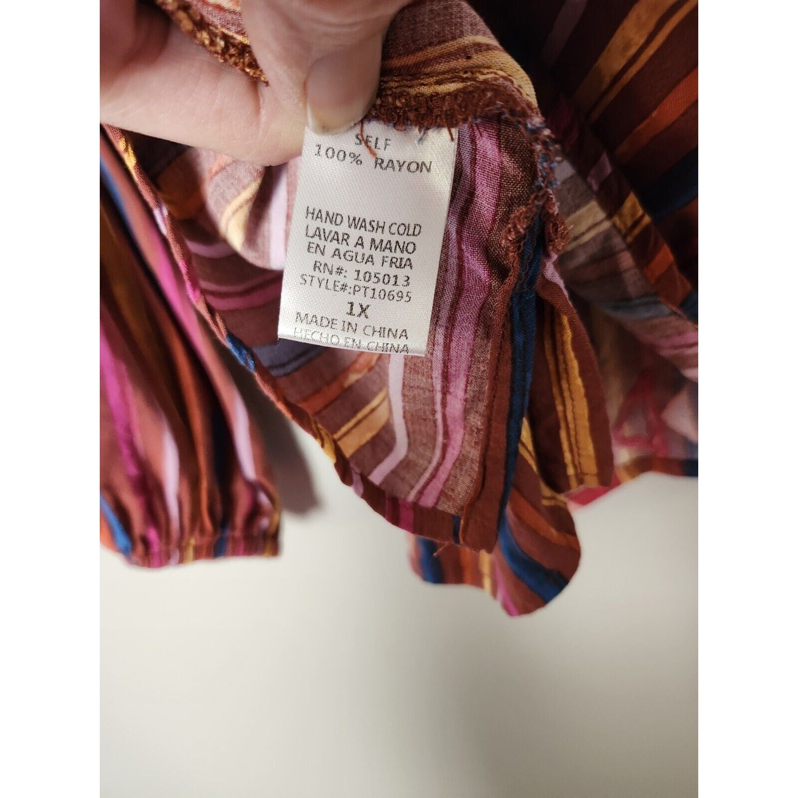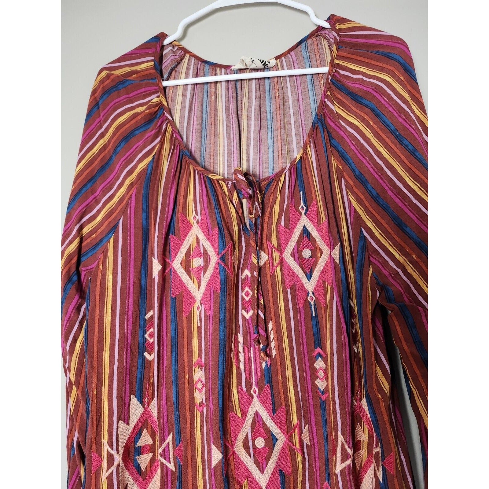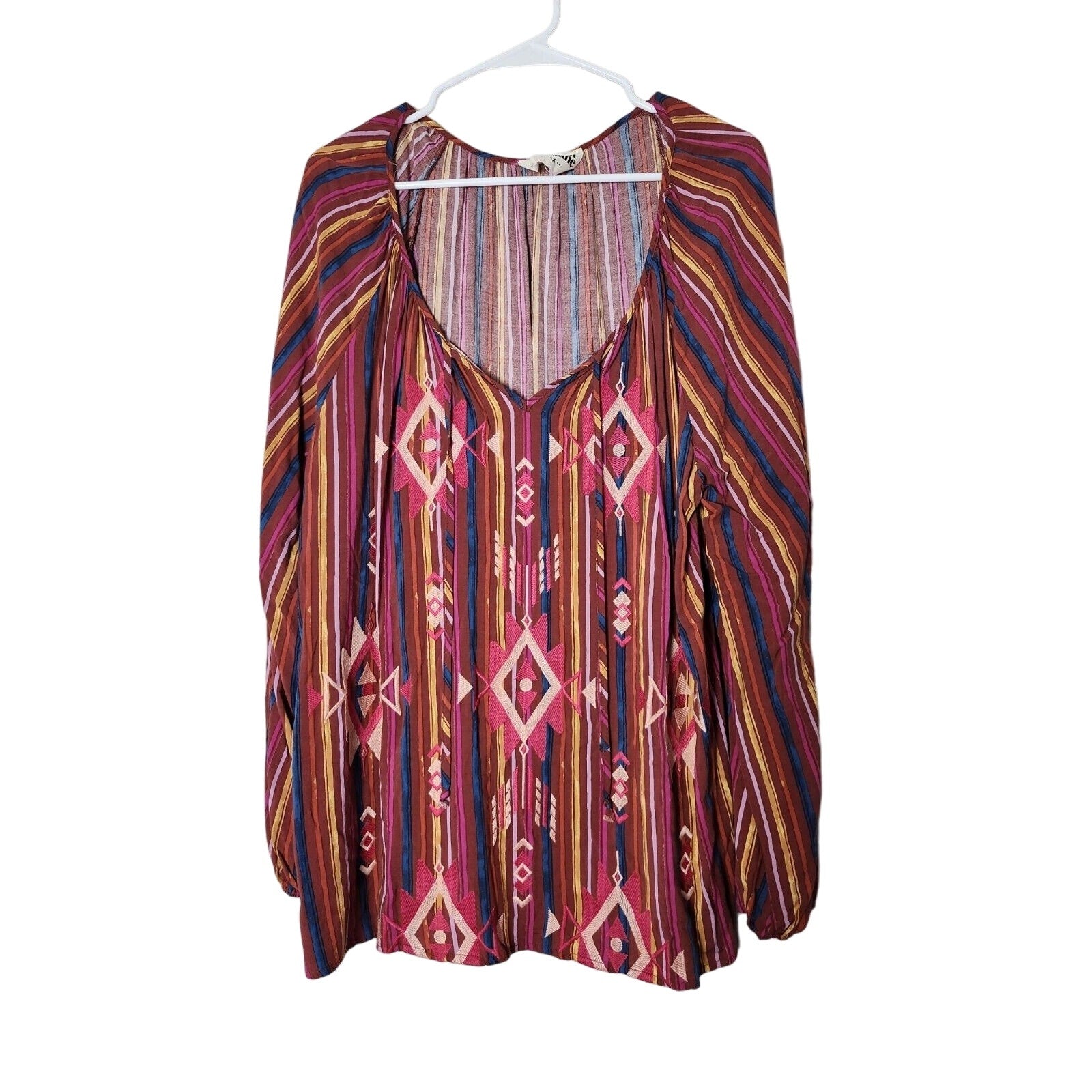 Savanna Jane Peasant Blouse Plus Size 1X Boho Embroidered Striped Aztec Colorful