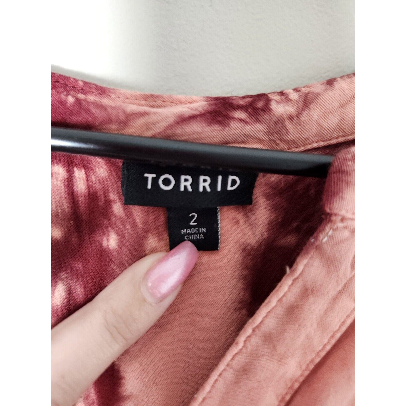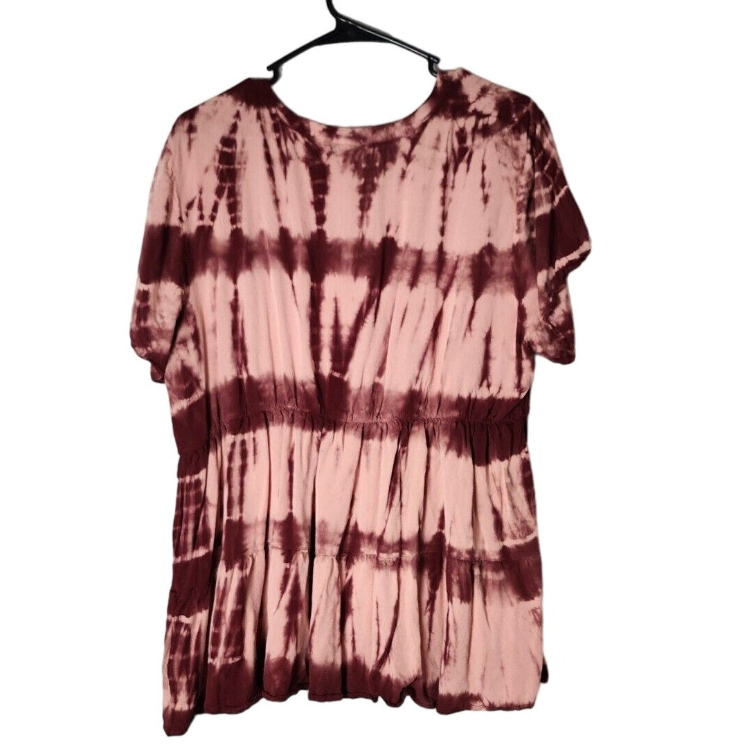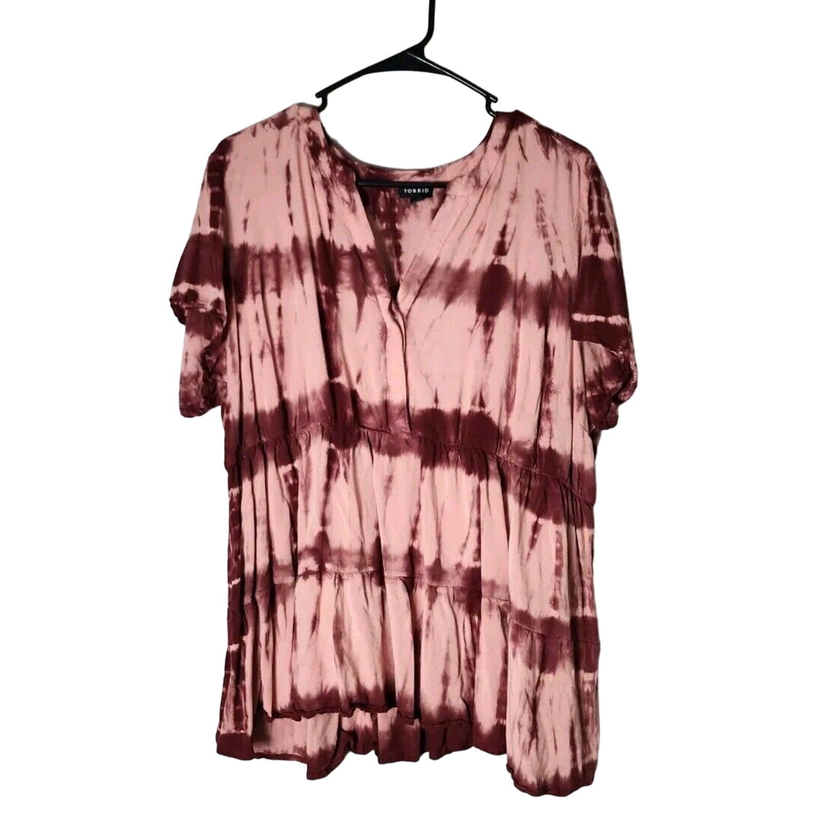 Torrid Babydoll Top Plus Size 2X Peach Tie Dye Tiered Short Sleeve V-Neck