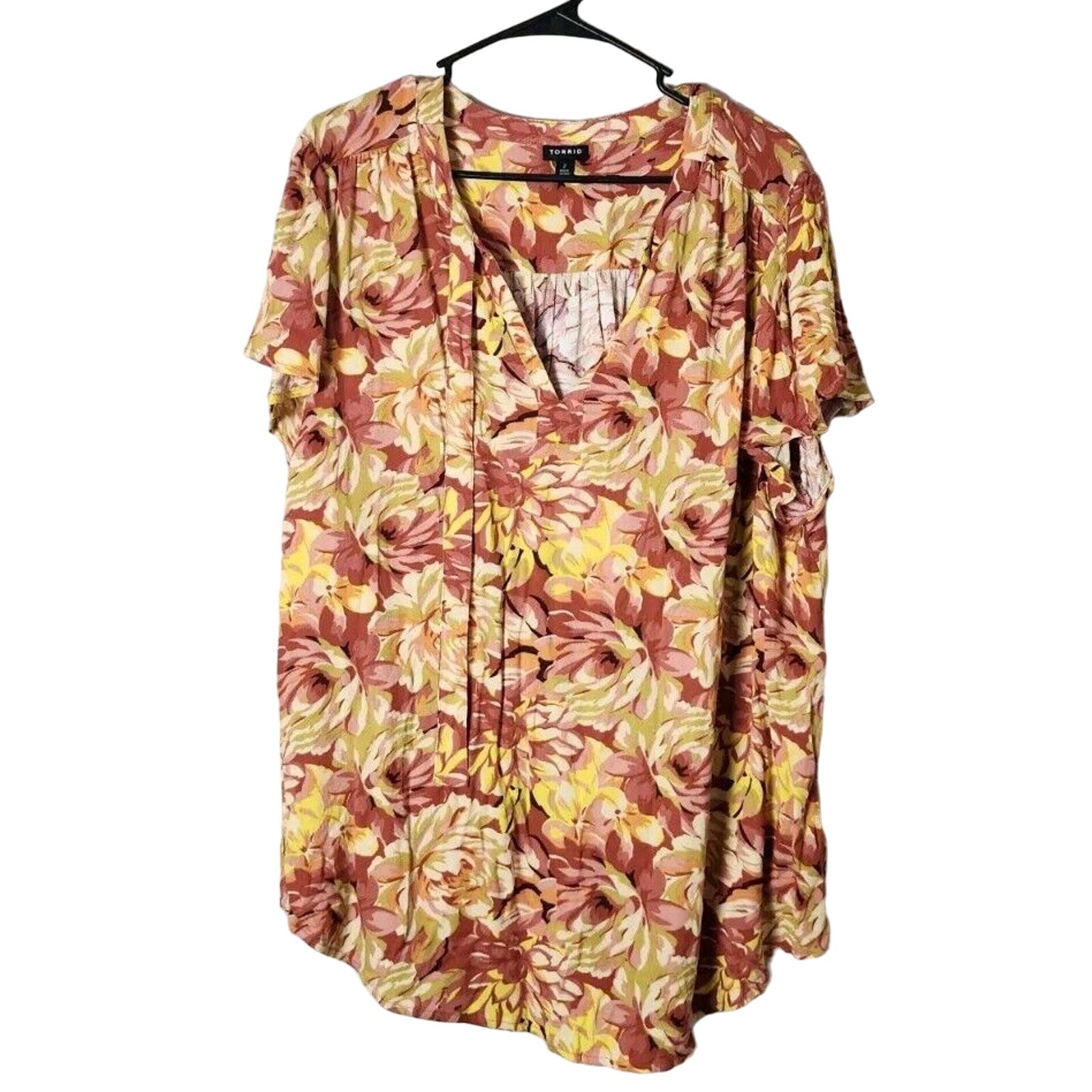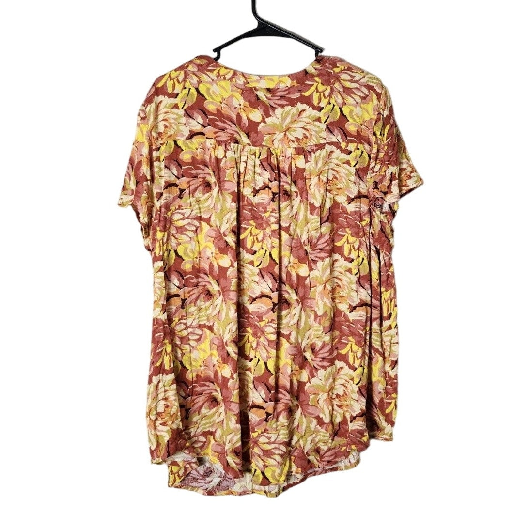 Torrid Blouse Plus Size 2X Gauze Floral Burnt Orange Yellow Short Sleeve