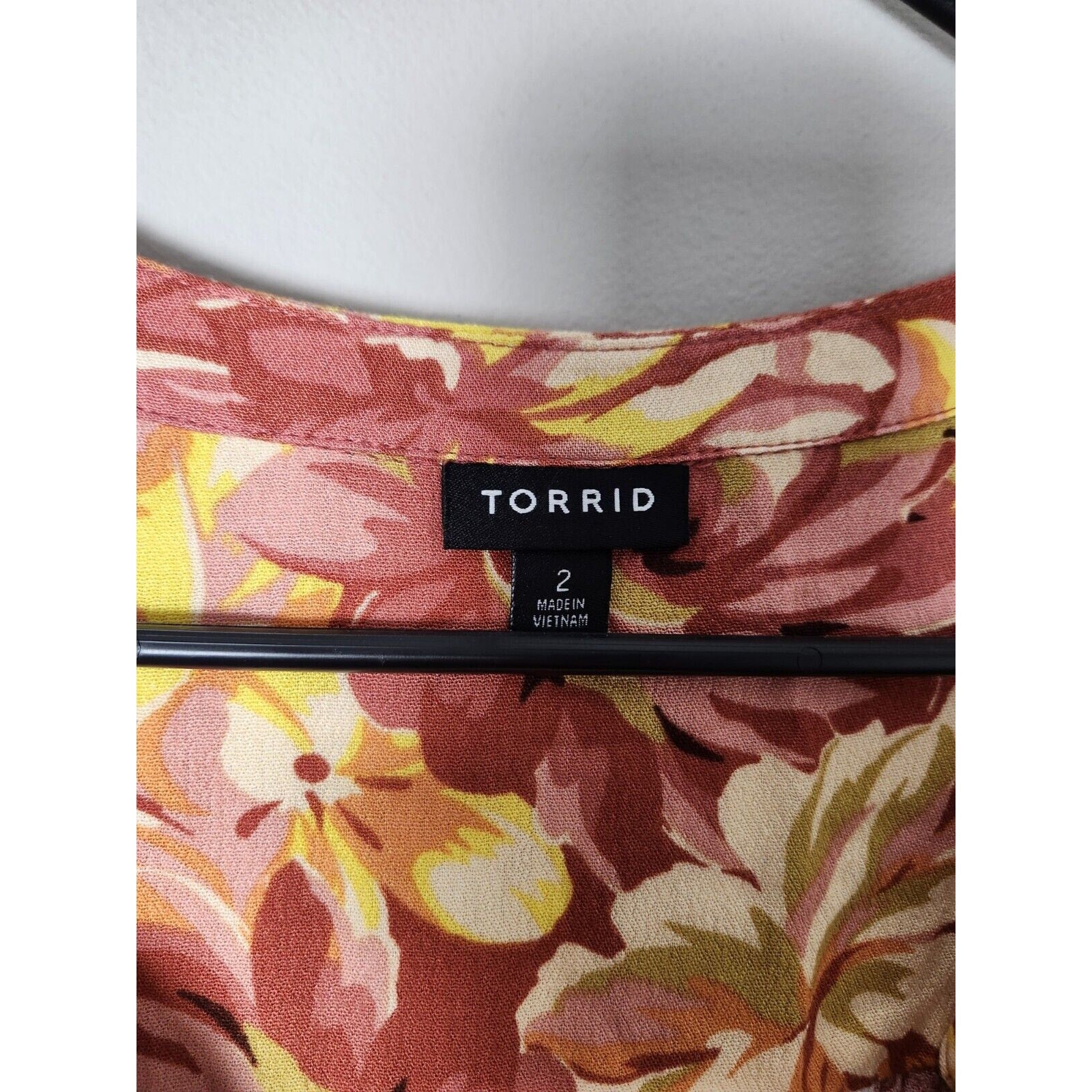 Torrid Blouse Plus Size 2X Gauze Floral Orange Yellow Short Sleeve V-neck Tie