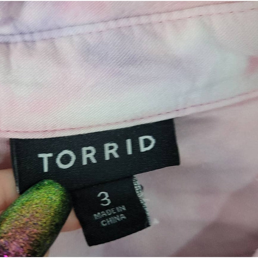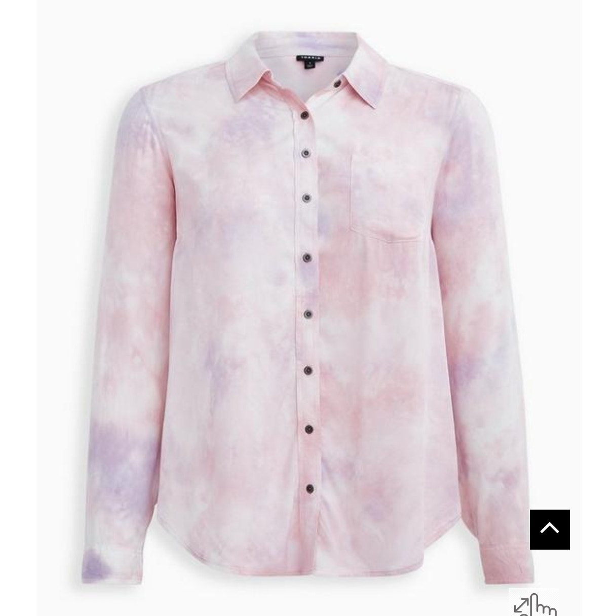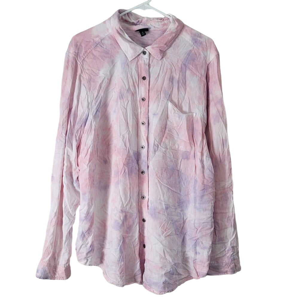Torrid Blouse Button-Up Long Sleeve Pink Purple Tie Dye Size 3/3X