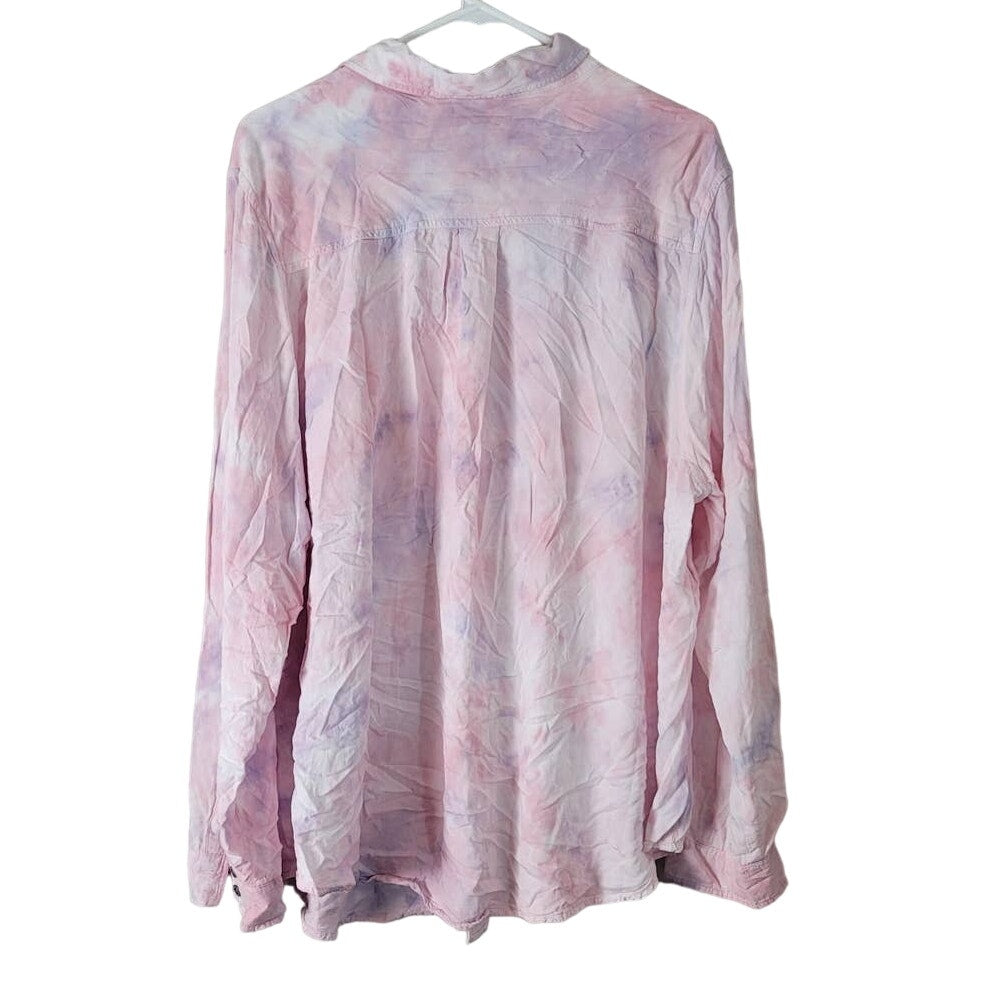 Torrid Blouse Plus Size 3X Button-Up Long Sleeve Pink Purple Tie Dye