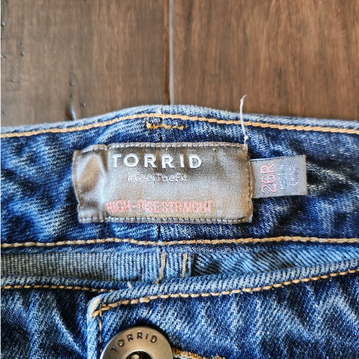 Torrid High Rise Straight Jeans Plus Size 26 Blue Denim Distressed Button Fly