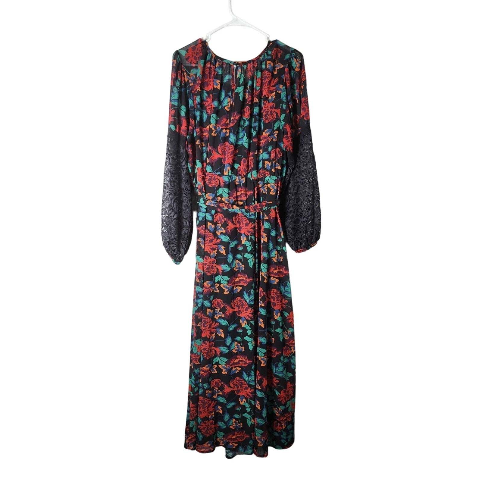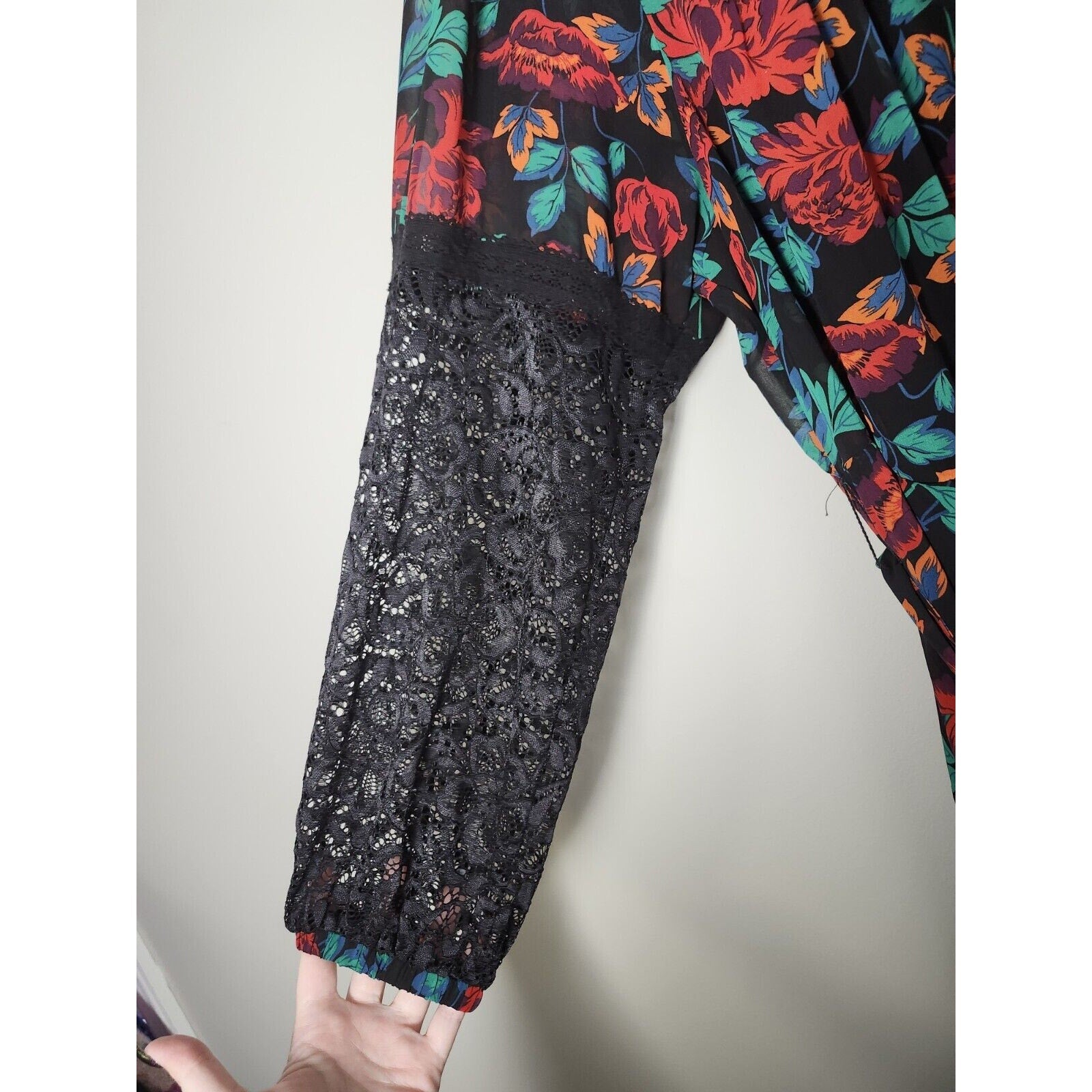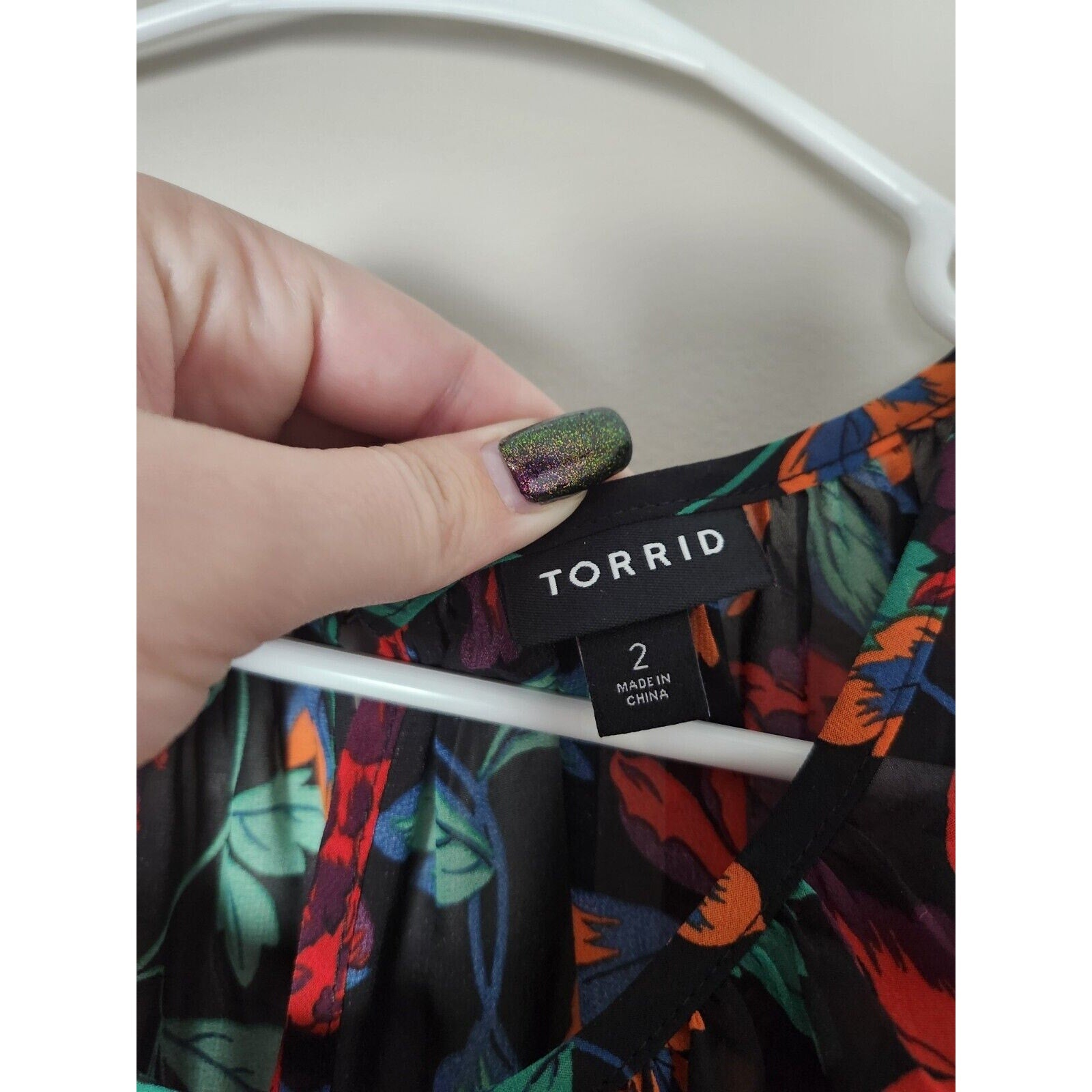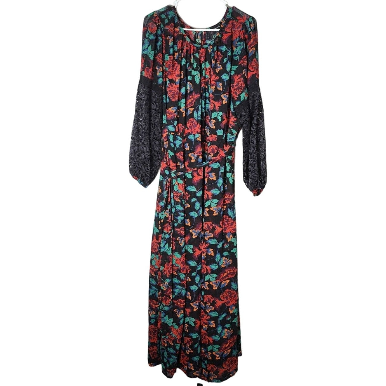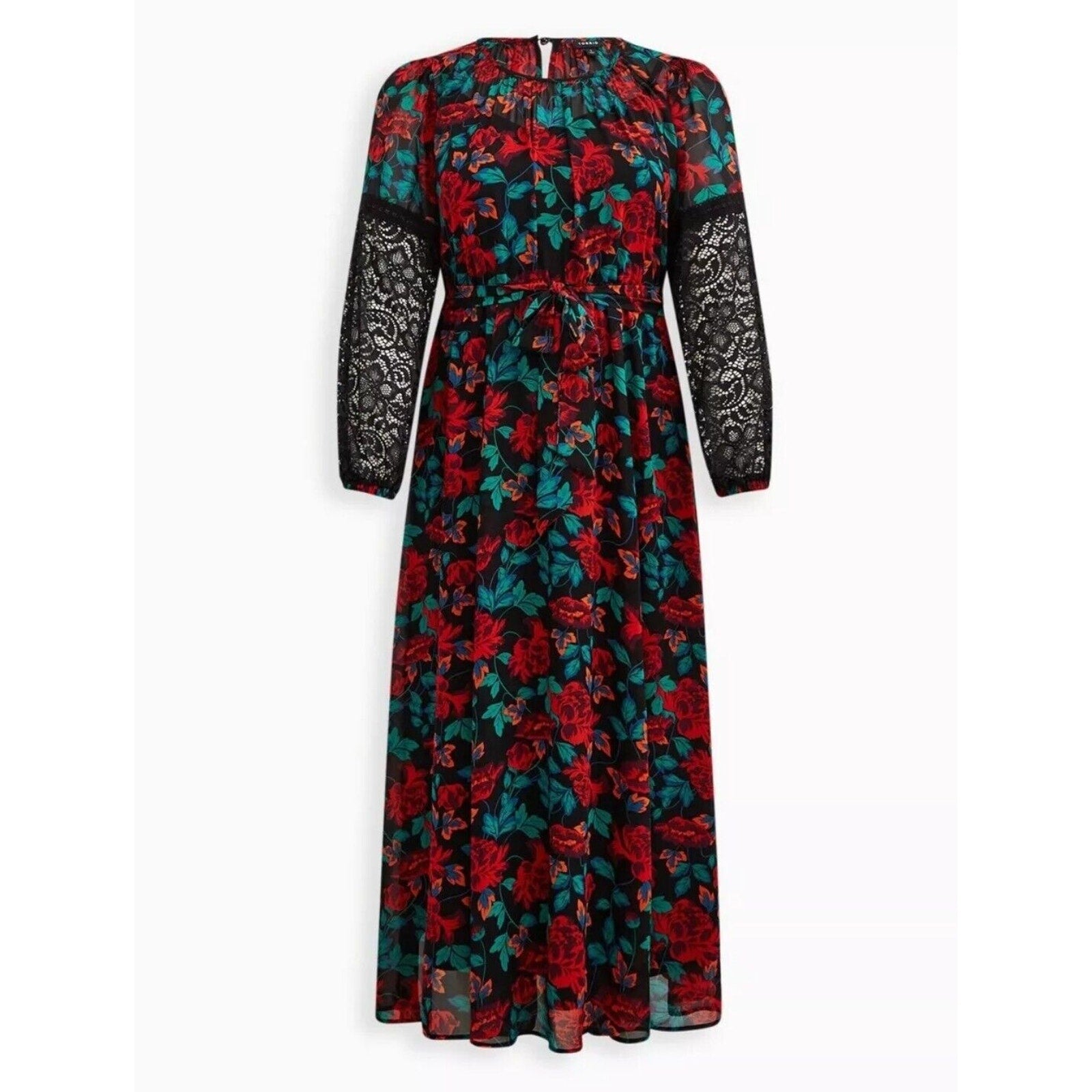 Torrid Maxi Dress Plus Size 2X Peasant Lace Chiffon Black Floral Long Sleeve